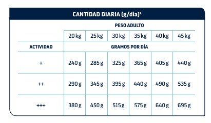 Arroz (25%), maíz entero, pavo (13%), proteínas deshidratadas de ave, pollo (7%), proteína de maíz, proteínas deshidratadas de cerdo, aceite de coco (3,3%), proteínas animales hidrolizadas (ave, cerdo, pescado), pulpa de remolacha (2%), harinillas de trigo, sustancias minerales, inulina de achicoria (0,4%), proteínas plasmáticas de cerdo (fuente natural de inmunoglobulinas) (0,4%), aceite de pescado, aceite de soja, glucosamina (380 mg/kg),