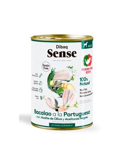 DIBAQ SENSE COMIDA HÚMEDA NO GRAIN DE BACALAO A LA PORTUGUESA PARA PERROS ADULTOS 380g – (12uds./caja)