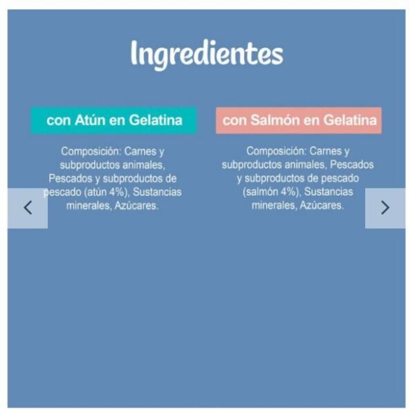 • Comida húmeda en sobre con textura gelatinosa y tiernos tropezones de carne de salmón y atún para el cuidado de gatos adultos sanos.