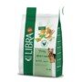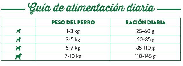 Cereales (maíz entero 4%, trigo integral 4%), carnes y subproductos animales (proteínas deshidratadas de pollo 4%), verduras (guisantes deshidratados 4%, zanahorias deshidratadas 0,5%, equivalente a un 4% de zanahorias frescas), aceites y grasas, subproductos de origen vegetal, extractos de proteínas vegetales, sustancias minerales, frutas (manzana deshidratada 0,3%, equivalente a un 2% de manzana fresca), romero deshidratado 0,01%, albahaca