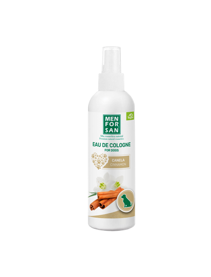 Agua de colonia para perros con fragancia a canela especialmente creada para proporcionar después del baño un olor fresco y un intenso efecto desodorante muy agradable respetando la piel y las propiedades olfativas del animal. No contiene alcohol y tiene pH neutro careciendo de efectos irritantes y evitando que el perro estornude después de su aplicación.