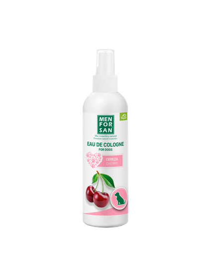 Agua de colonia para perros con fragancia a cereza. Especialmente creada para proporcionar después del baño un olor fresco y un intenso efecto desodorante muy agradable respetando la piel y las propiedades olfativas del animal. Tiene pH neutro careciendo de efectos irritantes y evitando que el perro estornude después de su aplicación.