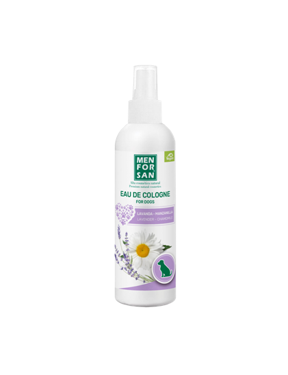 Agua de colonia para perros con fragancia a lavanda y manzanilla especialmente creada para proporcionar después del baño un olor fresco y un intenso efecto desodorante muy agradable respetando la piel y las propiedades olfativas del animal. Tiene pH neutro careciendo de efectos irritantes y evitando que el perro estornude después de su aplicación.