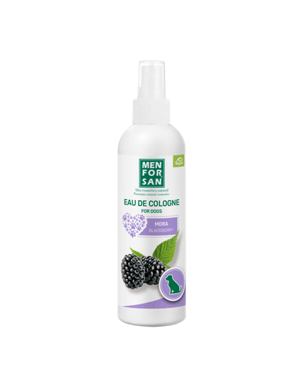Agua de colonia para perros con fragancia a mora especialmente creada para proporcionar después del baño un olor fresco y un intenso efecto desodorante muy agradable respetando la piel y las propiedades olfativas del animal. No contiene alcohol y tiene pH neutro careciendo de efectos irritantes y evitando que el perro estornude después de su aplicación.