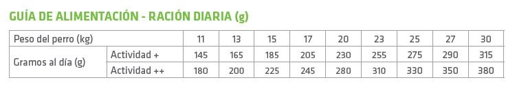 Proteínas deshidratadas de pollo y pavo, maíz, harina de maíz “fioretto”, pollo fresco, arroz 10%, grasa de origen animal, buey 4%, proteínas animales hidrolizadas, semillas de lino*, pulpa de remolacha* 2,3%, proteínas deshidratadas de buey, aceite de maíz, autolisato de levadura 0,75%, extracto seco de raíz de achicoria (fuente de inulina)* 0,7%, sustancias minerales, lignocelulosa, manzana deshidratada en polvo* 0,15%, concentrado de limón en polvo* 0,1%, espirulina (Arthrospira platensis)* 0,1%.