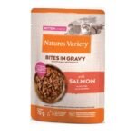 NATURE’S VARIETY CAT KITTEN BOCADITOS EN SALSA FLOWPACK 2 CON POLLO Y 2 CON SALMÓN 70g (11uds./caja)