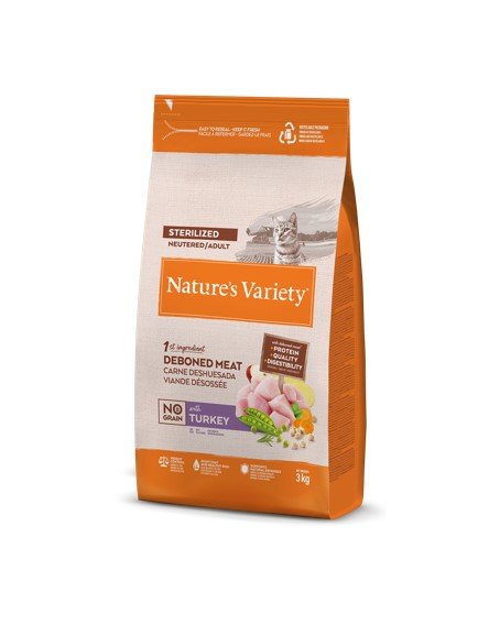 Carne de pavo deshuesada* (20%), proteína deshidratada de pollo (19%), guisantes deshidratados* (13%), proteína deshidratada de cerdo (9%), patata deshidratada* (7%), almidón de guisante*, garbanzos deshidratados* (4%), grasa avícola* (3%), pulpa de remolacha*, proteínas animales hidrolizadas (ave, cerdo, pescado) (3%), proteína deshidratada de pavo (2%), sustancias minerales, fibra de guisante*, zanahoria deshidratada*(0,5%, equivalente a un 4% de zanahoria fresca), manzana deshidratada* (0,3% equivalente a un 2% de manzana fresca), algas marinas deshidratas (kelp)* (0,01%), romero deshidratado* (0,01%). *Ingredientes naturales.