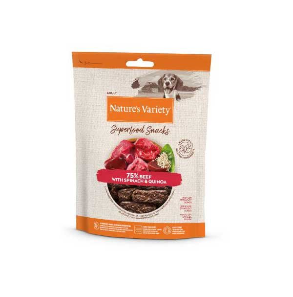 Snacks Nature’s Variety Superfood de ternera con espinacas y quinoa para perros